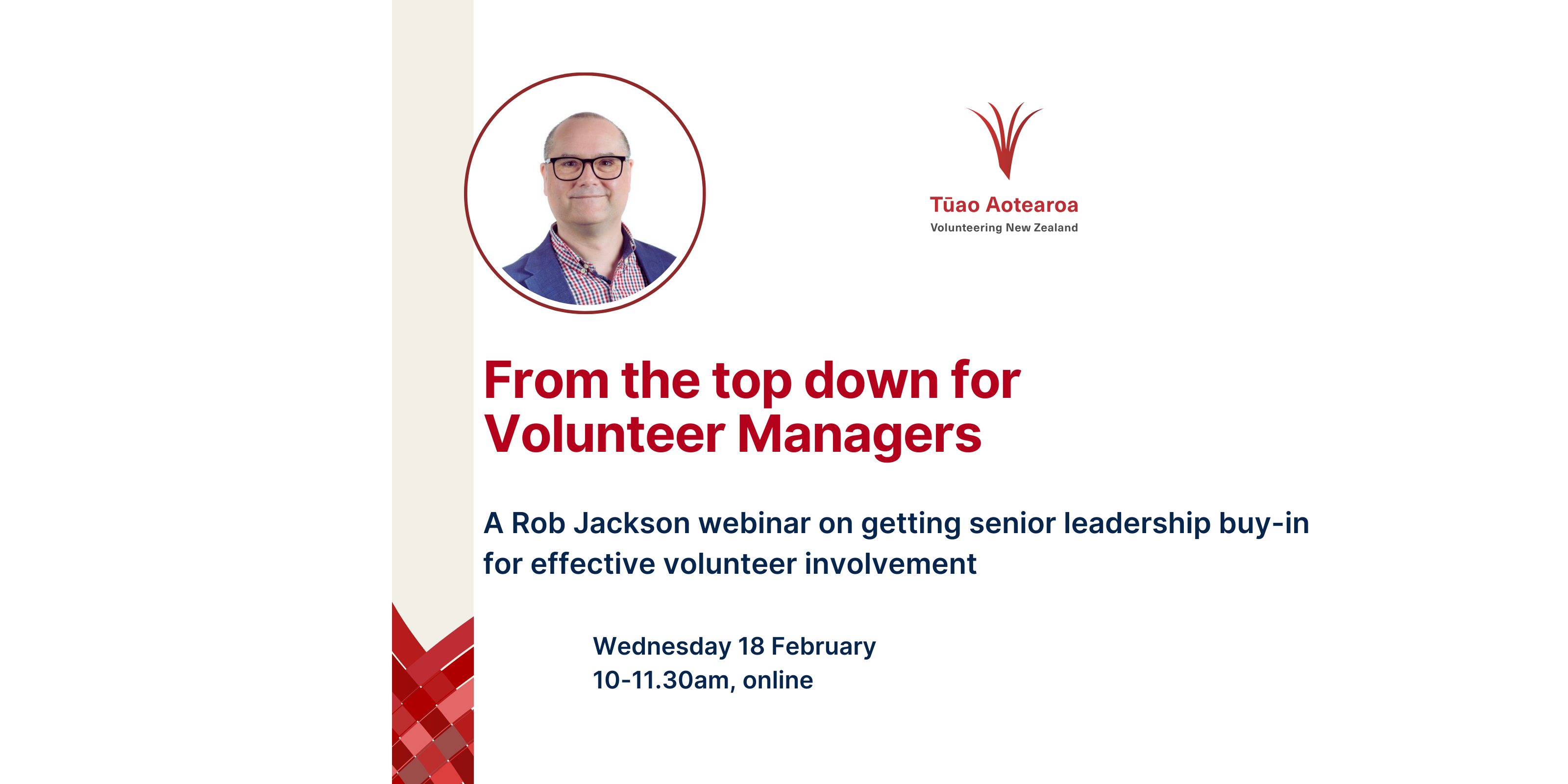 I wouldn't have made anywhere near the progress I have with my role without VNZ; between the courses they run, the mentoring programme, the resources online, the videos that they have online. It is the one and only kind of national New Zealand support that has made a real difference in what I've been able to achieve in my role.